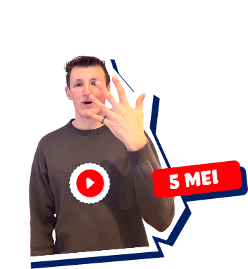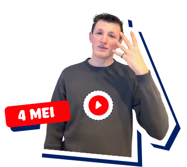 Dit is Max. Max maakt video’s over gebarentaal. In deze video's vertelt hij je meer over gebarentaal en oefenen jullie samen een zin over 4 en 5 mei. Doe je mee?